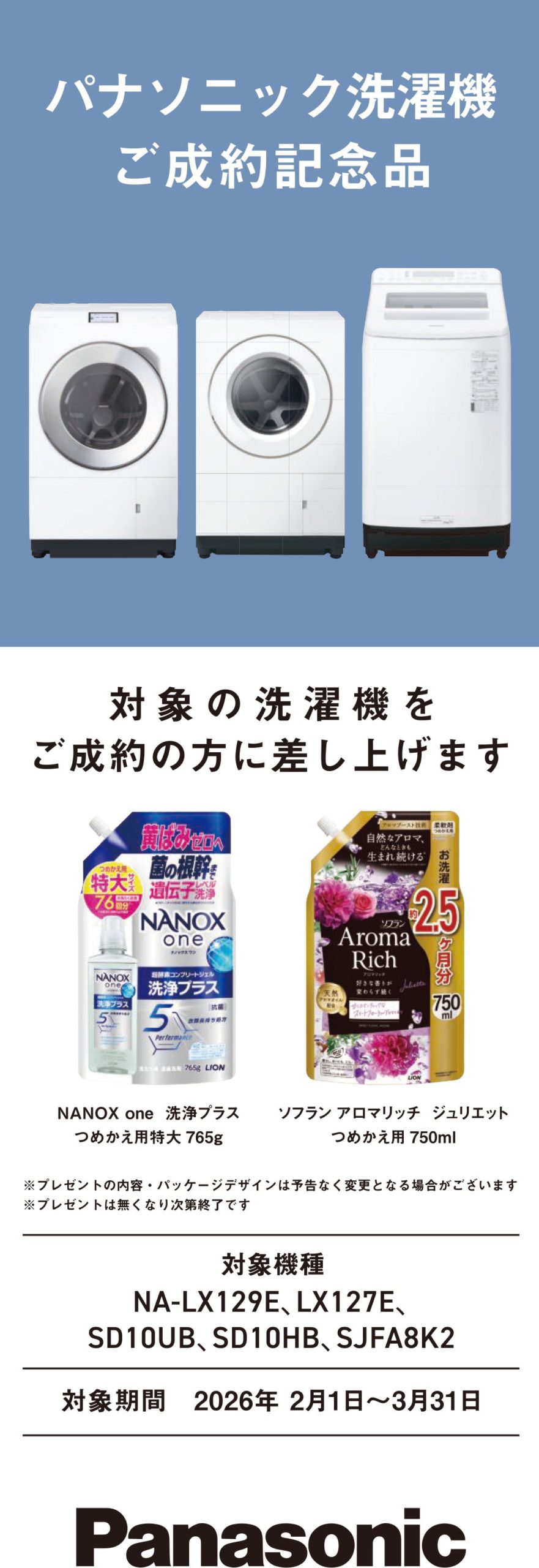 キャンペーン期間中に対象の洗濯機をご成約の方に、洗剤と柔軟剤をプレゼント🎁